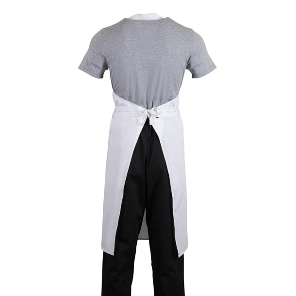 Traditional bib apron in a white finish with sewn in ties and brass eyelets, ideal for front or back of house use.