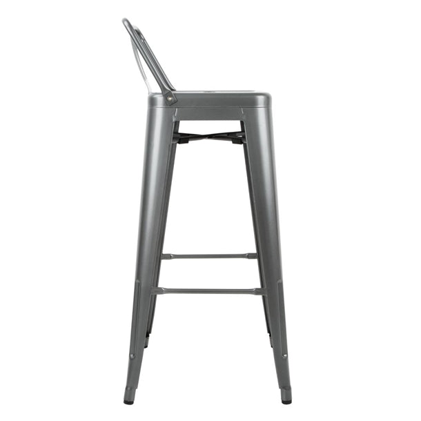 Bolero Bistro High Stool With Backrest Gun Metal (Pack of 4)