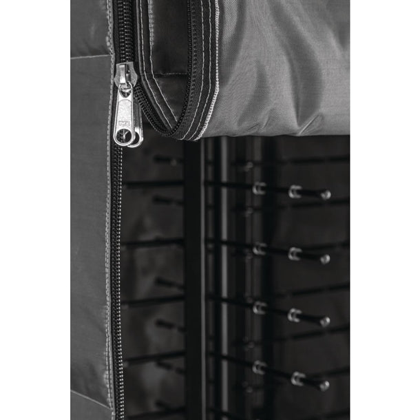 • Designed for use with the Jackstack plate storage, this Thermocover is ideal for keeping food at the perfect temperature, secure and hygienically sealed featuring a cover is made from industrial high tenacity PES fabric, with a polyester fibre filling. Corner zips grant easy access to trolleys, and saves time when clearing away whether it's for canteen, school or restaurant catering. Store freshly prepared food for longer, in cold storage or on its way to a buffet with this insulated cover. The thermocover preserves 72 to 14 plates of hot or cold food comfortable, and comes complete with document holder for convenience.