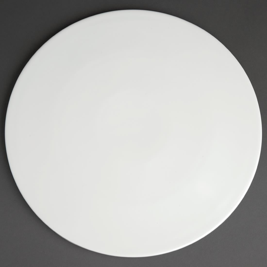 Created by Olympia, this perfectly flat pizza plate gives the illusion that it is hovering above the tabletop as the foot of the plate is set back and is therefore not visible from a normal viewing angle on the table. The perfectly smooth, raised surface allows pizza to easily slide to the edge and be picked up. As the plate is rimless, it also makes an interesting surface to allow chefs to get creative.