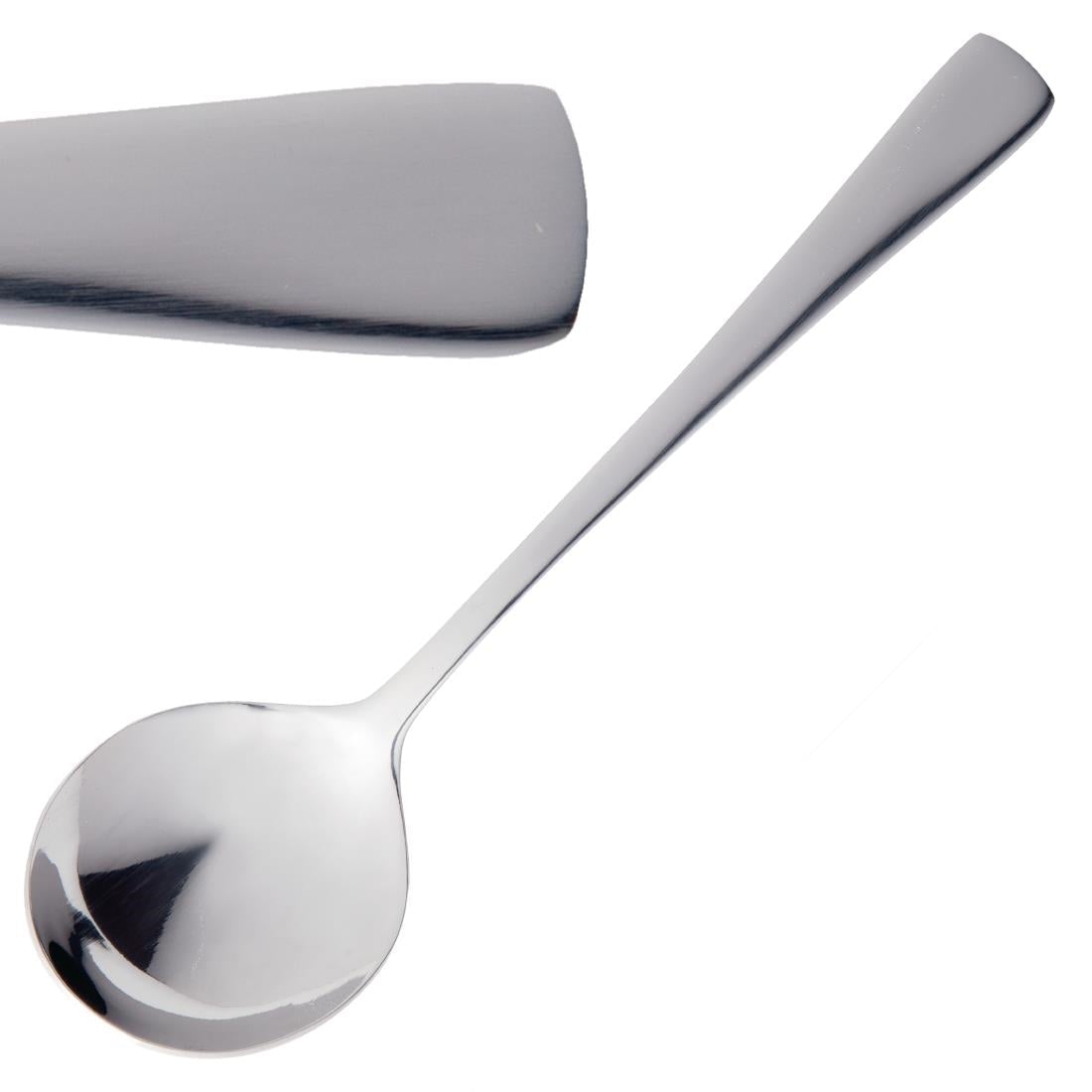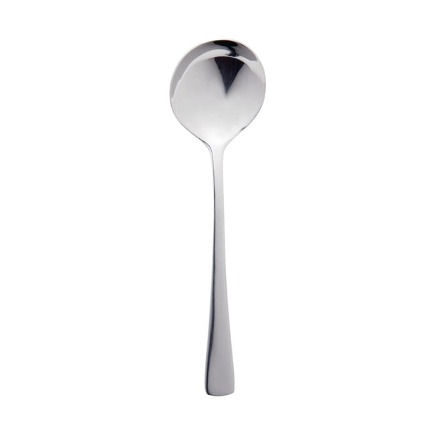 - Ideal for use with soups and velouté, this spoon from Olympia will suit any modern table setting. The Clifton collection features subtle, uncomplicated styling that looks stunning against a crisp, white tablecloth. Made from solid 18/0 stainless steel, this spoon receives multiple levels of buffing that results in a high-shine finish.