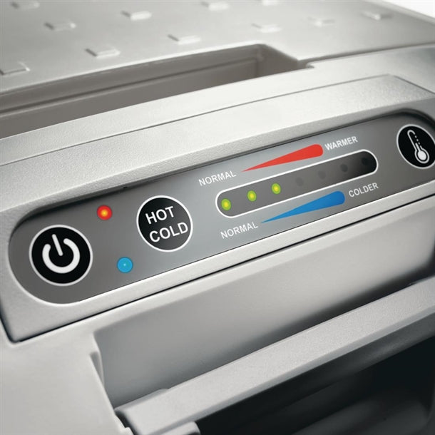 - The cool box features a intuitive soft-touch control panel allowing variable temperatures, up to 65°C in warming mode or 30°C below ambient temperatures. Featuring a locking door hatch and robust carry handles, this serves as a way to lock the lid while also being very easy to carry the box around. The box has a impressive 33Ltr capacity and can fit up to three 1/2 sized GN pans.