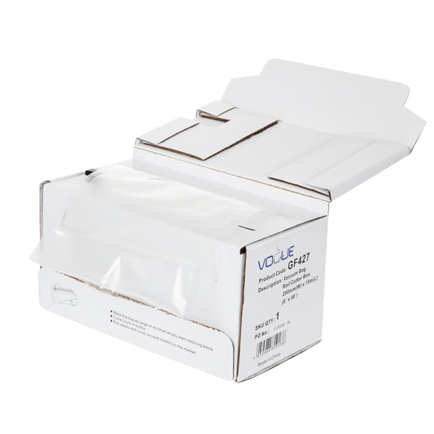 - The Vogue Vacuum Pack Roll with Cutter Box is exceptionally user friendly and highly versatile. Embossed, durable and highly hygienic, this vacuum packing roll is easy to cut to size and is suitable for freezing, microwaving and boiling. It is suitable for all vacuum packing machines, including Buffalo, Multivac, Sammic and Ital models.