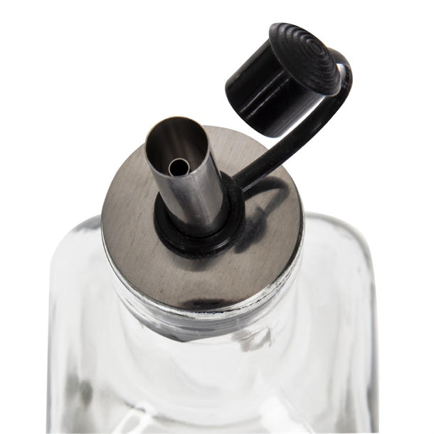 • Popular among chefs in the kitchen, the shape and size of each 500ml oil bottle makes it equally suitable for use as a vinegar or olive oil holder alongside your other tabletop condiment dispensers. The clear glass makes it easy to identify what's inside, and also when it's due a refill. Want to empty the bottle and store something else in it? No problem - it can be easily cleaned in a glasswasher too.