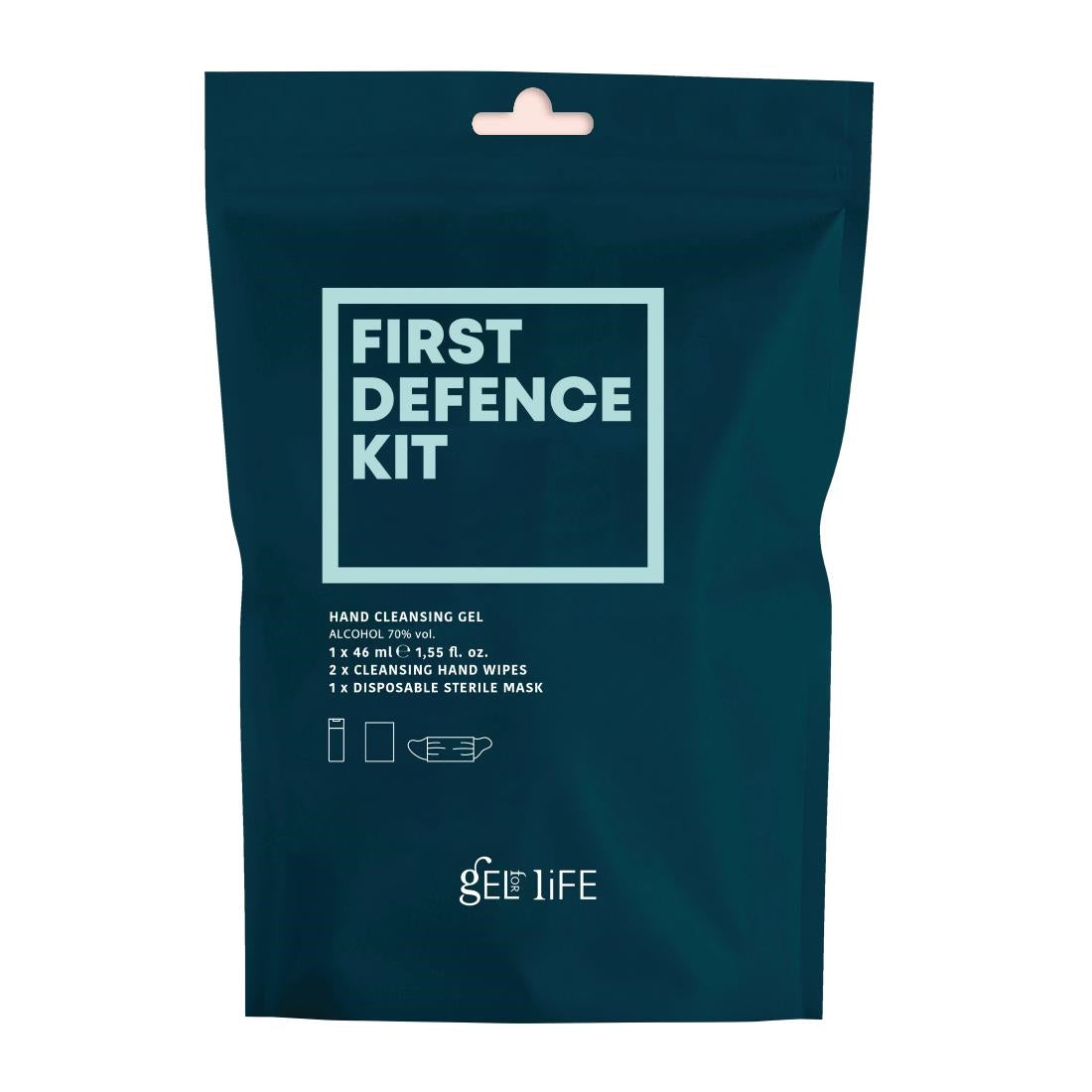 - Each of these 24 x GFL PPE personal first defence kits contain 1 x 70% alcohol hand sanitiser gel, 1 x 3-ply face mask and 2 x disinfectant hand wipes. This will ensure your staff and customers can thoroughly disinfect their hands without access to water, and have protection against airborne particles.