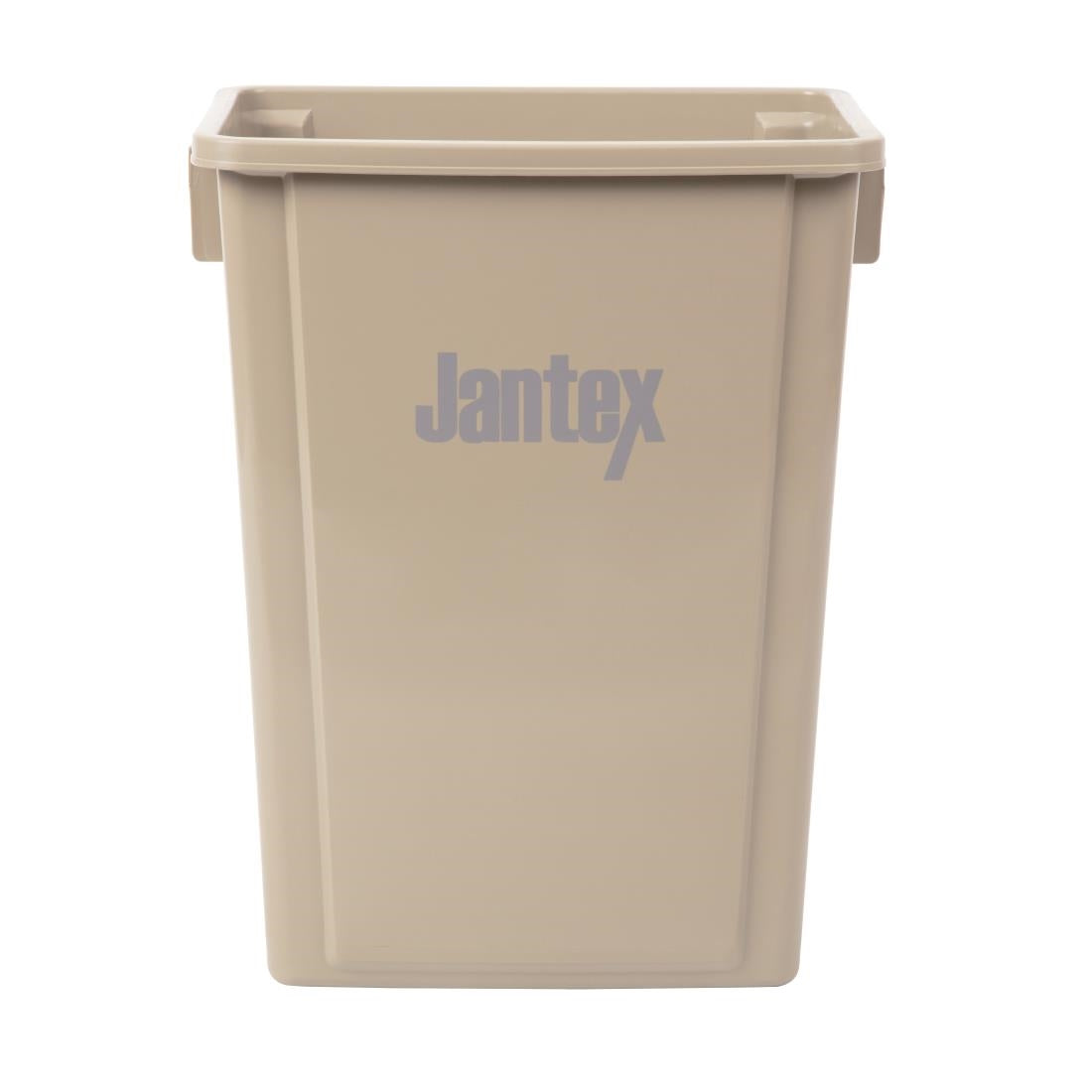 - Help to improve your planet-friendly practices, with the beige recycling bin from Jantex. This compact bin is designed to fit into any small areas within your business and allow for space-saving waste management - allowing you to utilise your storage space.