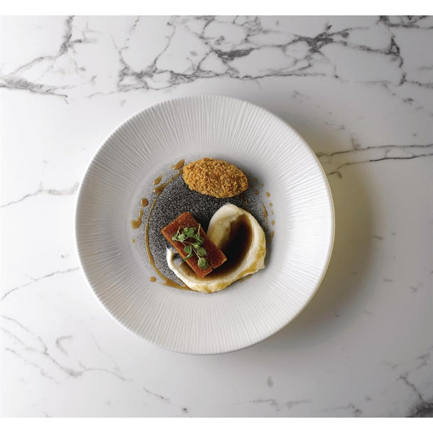 Put a fresh twist on your dishes with the Bamboo Deep Coupe Plate from Churchill. With a lined rim inspired by the raw textures of natural bamboo, it's perfect for tying together any main with a natural, organic feel. Drawing the eye mid-plate, this statement rim also ensures your dishes always take centre stage. Once there, the dusky quartz black centre gives the colours in your vibrant ingredients a calm backdrop against which to pop, ensuring they burst with energy. Not just strong in looks but in build too, the Deep Coupe is super vitrified for superb durability and is both dishwasher and microwave safe. Pair with other pieces from the striking Bamboo crockery and cutlery collection to freshen up any table top.