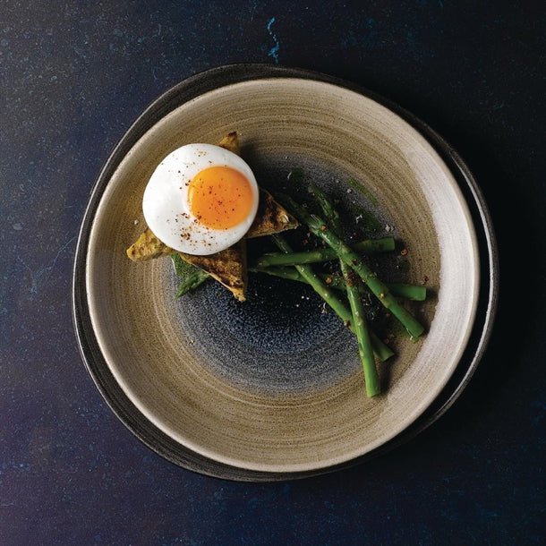 Striking statement crockery inspired by the fluidity of water. That glaze that pools in the centre draws the eye mid-plate to bring your food truly into the spotlight, while giving it an eye-catching backdrop against which its colours can pop. Delightfully rustic, the textured pattern of the finish adds the final touch, giving you crockery that captures the raw beauty of artisan pottery to bring an authentic, traditional feel to your tables.