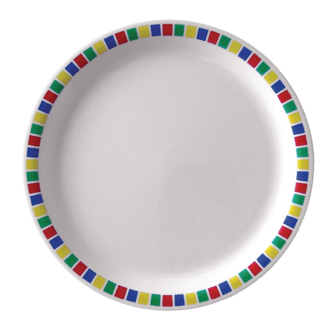 For a hygienic and durable alternative to china, our Olympia Kristallon melamine Fairground range 9" dinner plates are the perfect crockery for use in schools, nursing homes and other establishments. Melamine is a durable, scratch and chip resistant plastic which is lightweight, and this melamine crockery range has a colourful patterned rim.