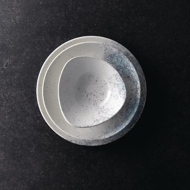 The Haze design features a multi-tonal pattern inspired by the process of spraying glaze onto ceramics in Churchill's semi matte Vellum finish.