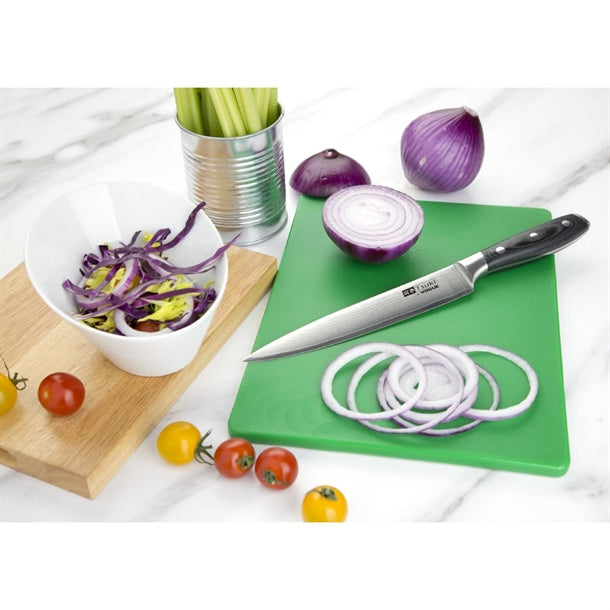 - Cut in confidence, with the Vogue Tsuki carving knife from the Series 7 range. The knife features a sturdy, 8" blade that effortlessly slices through the toughest of meat, and provides you with professional results after every cut. Features an ergonomic, Micarta handle that supplies a secure grip during use, and sits comfortably within the hand. This helps to reduce the risk of injuries within the workplace and keeps your hands free from aches or pains.