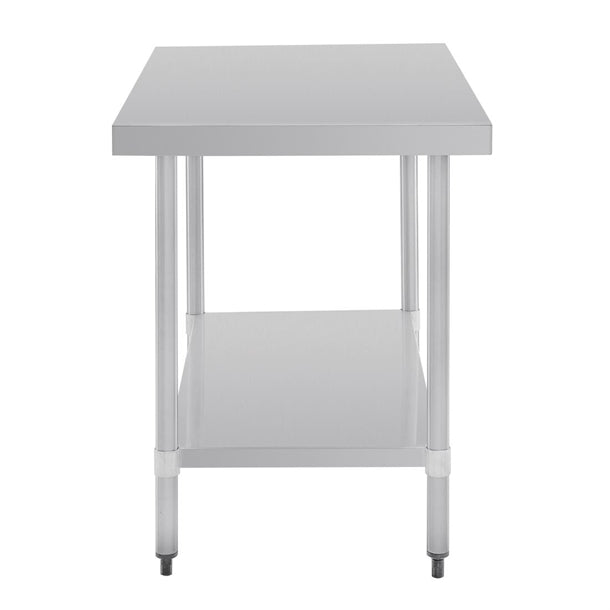 - Give your staff the space they need to prepare quality dishes with this 1200mm stainless steel prep table from Vogue. With a height adjustable shelf, the table can store items and appliances of various sizes - making for a handy storage space for measuring bowls and other items needed to prep food.