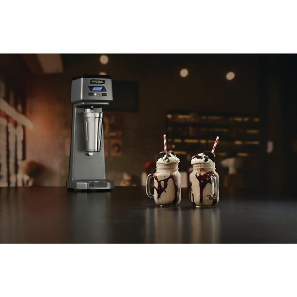 • Enjoy hands-free operation and consistent results with the Waring® WDM120TXK Heavy-Duty Single-Spindle Drink Mixer with Timer. Make classic milkshakes and malts your customers will love. Power through the coldest, hardest ice cream with ease, thanks to a 1 HP, high-performance motor. A large, easy-to-read LCD display lets you program the timer before or during use to maximize efficiency.