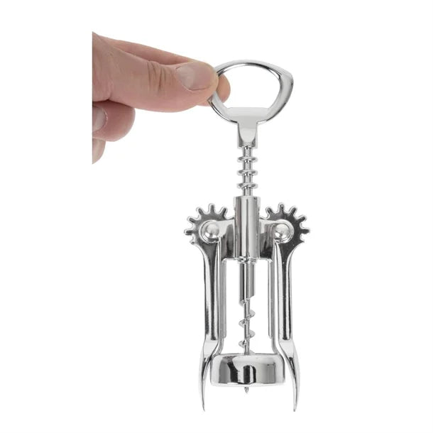 • Keep this professional corkscrew within easy reach to ensure you don't keep your customers waiting for their drinks. A strong and robust design is certain to save you time and speed up your bar service - the sharp corkscrew pierces and twists into corks with ease, while the twin levers guarantee an equally effortless removal. At the other end, a handy crown top bottle opener means you'll be able to crack open beer bottles as quickly as you do with your wine.